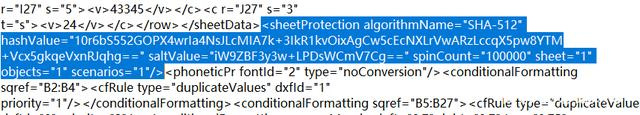 我们上面设置密码的工作表是sheet1,所以我们打开sheet1,可以看到很多字符。