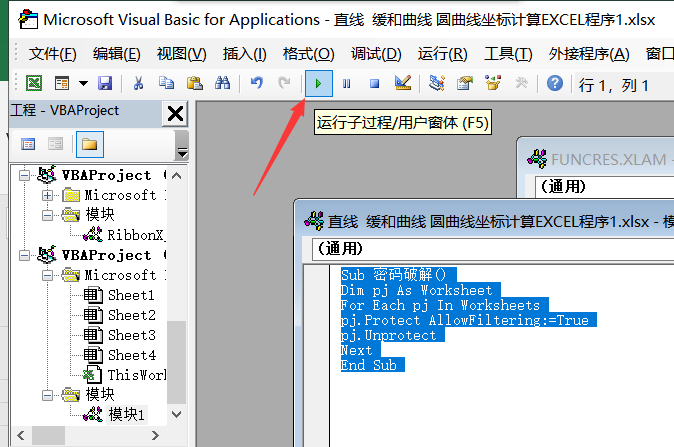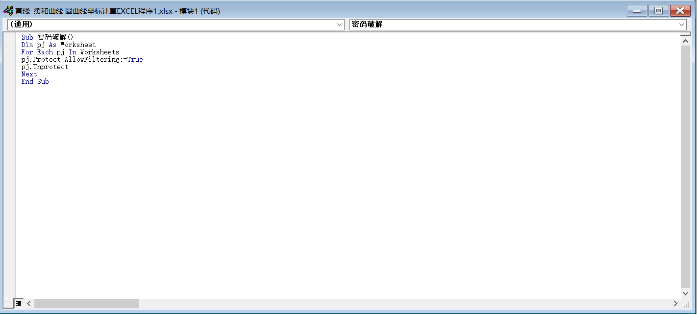 Sub 密码破解() Dim pj As Worksheet For Each pj In Worksheets pj.Protect AllowFiltering:=True pj.Unprotect Next End Sub