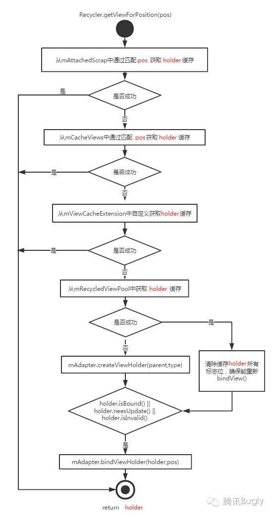 RecyclerView获取缓存的流程: