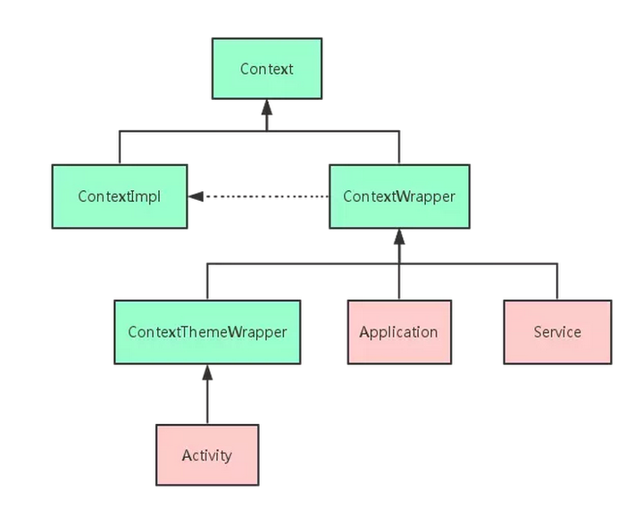 Context类本身是一个纯abstract类,它有两个具体的实现子类:ContextImpl和ContextWrapper。其中ContextWrapper类,如其名所言,这只是一个包装而已,ContextWrapper构造函数中必须包含一个真正的Context引用,同时ContextWrapper中提供了attachBaseContext()用于给ContextWrapper对象中指定真正的Context对象,调用ContextWrapper的方法都会被转向其所包含的真正的Context对象。ContextThemeWrapper类,如其名所言,其内部包含了与主题(Theme)相关的接口,这里所说的主题就是指在AndroidManifest.xml中通过android:theme为Application元素或者Activity元素指定的主题。当然,只有Activity才需要主题,Service是不需要主题的,因为Service是没有界面的后台场景,所以Service直接继承于ContextWrapper,Application同理。而ContextImpl类则真正实现了Context中的所以函数,应用程序中所调用的各种Context类的方法,其实现均来自于该类。一句话总结:Context的两个子类分工明确,其中ContextImpl是Context的具体实现类,ContextWrapper是Context的包装类。Activity,Application,Service虽都继承自ContextWrapper(Activity继承自ContextWrapper的子类ContextThemeWrapper),但它们初始化的过程中都会创建ContextImpl对象,由ContextImpl实现Context中的方法。