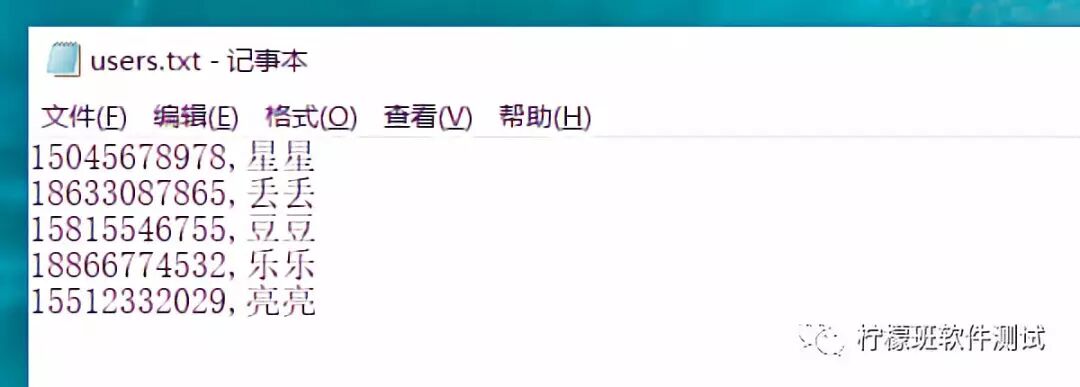 1)若需要注册的手机号不能随机,必须是用户真实提供的手机号进行注册的话,就采用以下这种方式,提前收集用户真实手机号及昵称,存放在本地txt或者CSV文件(CSV文件默认逗号隔开)
