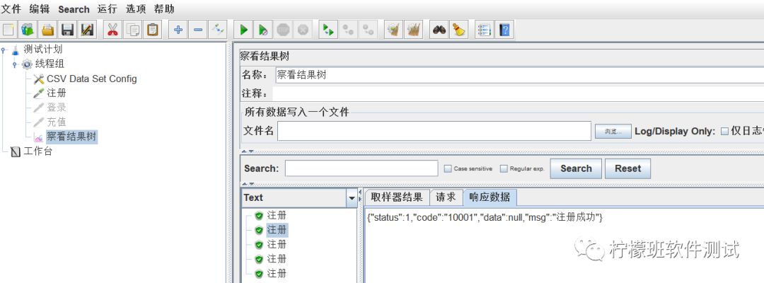 4)设置线程组中线程数为5,执行后,输出如下结果:成功