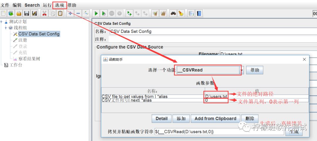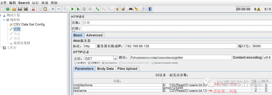 2)线程组右键添加-->配置元件-->CSV Data Set Config