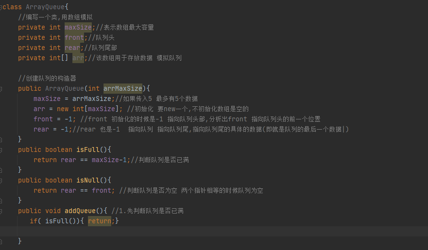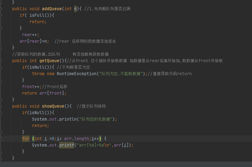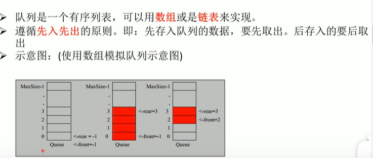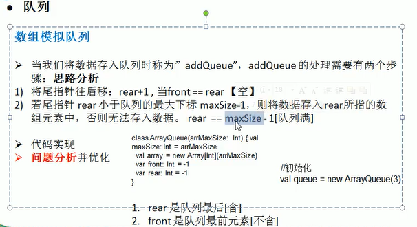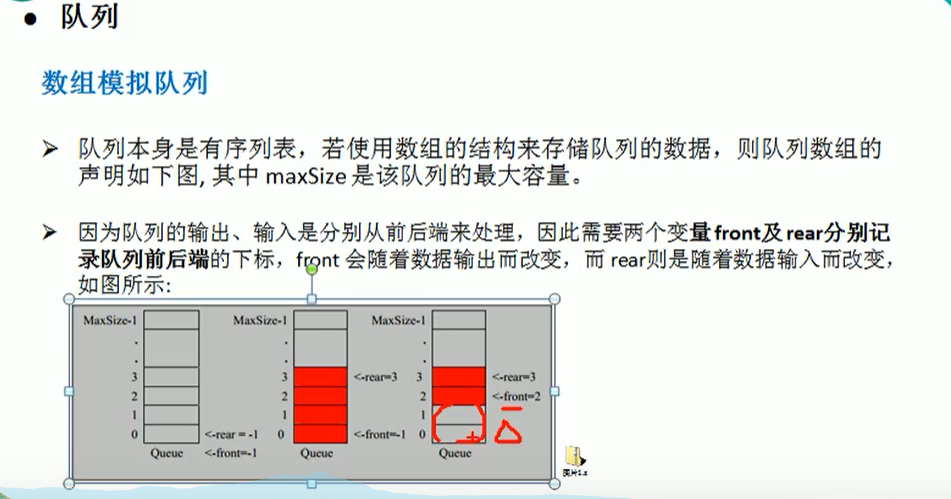目前是有问题的 非环形队列 下面的空间没有使用但也没有办法使用 数组只用了一次 添加数据也没法添加