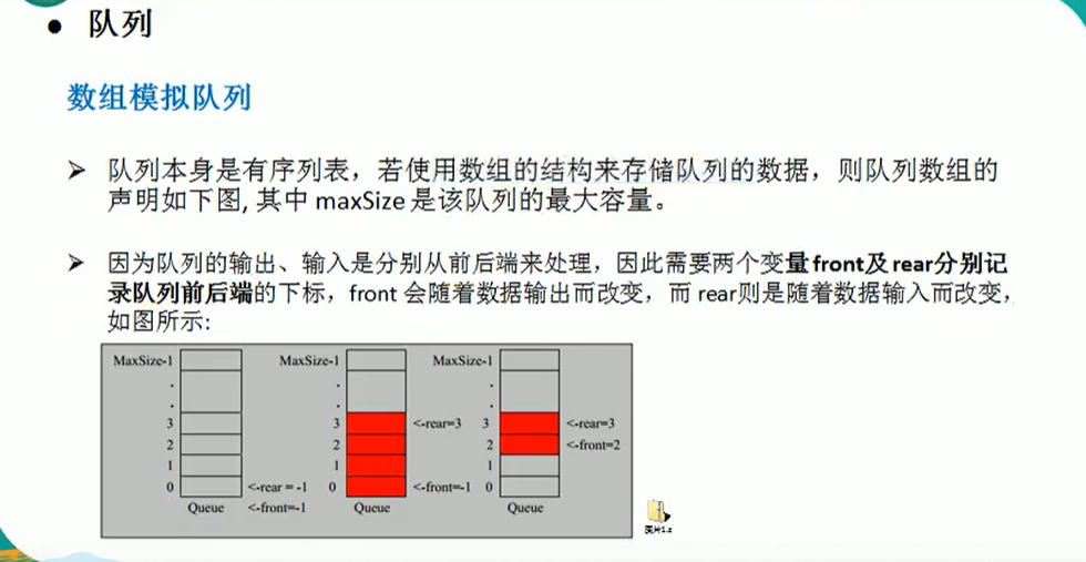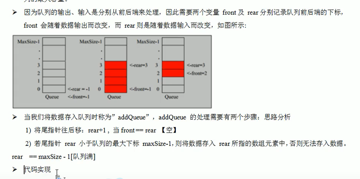 front 和rear 记录前后端下标 front 初始化的时候是 -1