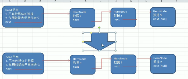 HeroNode temp = head.next;//辅助变量指向第一个变量,而不是头节点