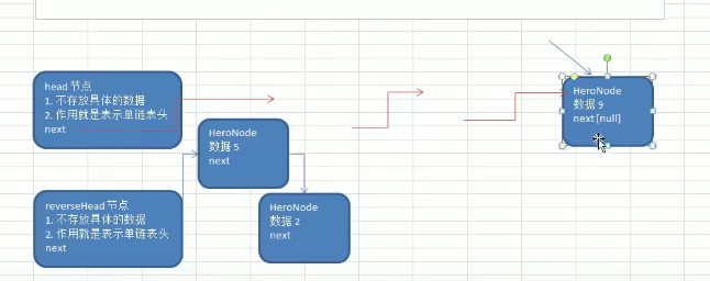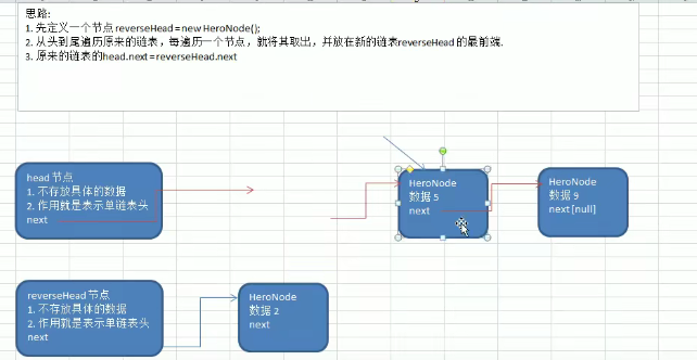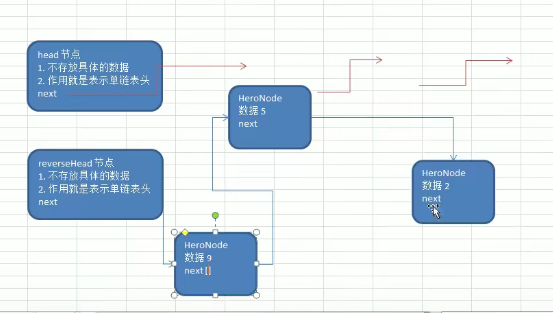 * 1.先定义一个节点 reverseHead = new HeroNode();