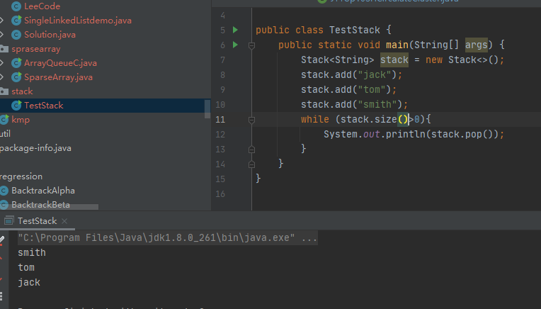 System.out.println(stack.pop());//出栈的pop才能一个个出