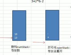 3就是入数栈, 加号直接入符号栈 ,2 直接入数栈,乘号来的时候进行判断,6也直接入栈, 减号满足优先级小于栈中操作符