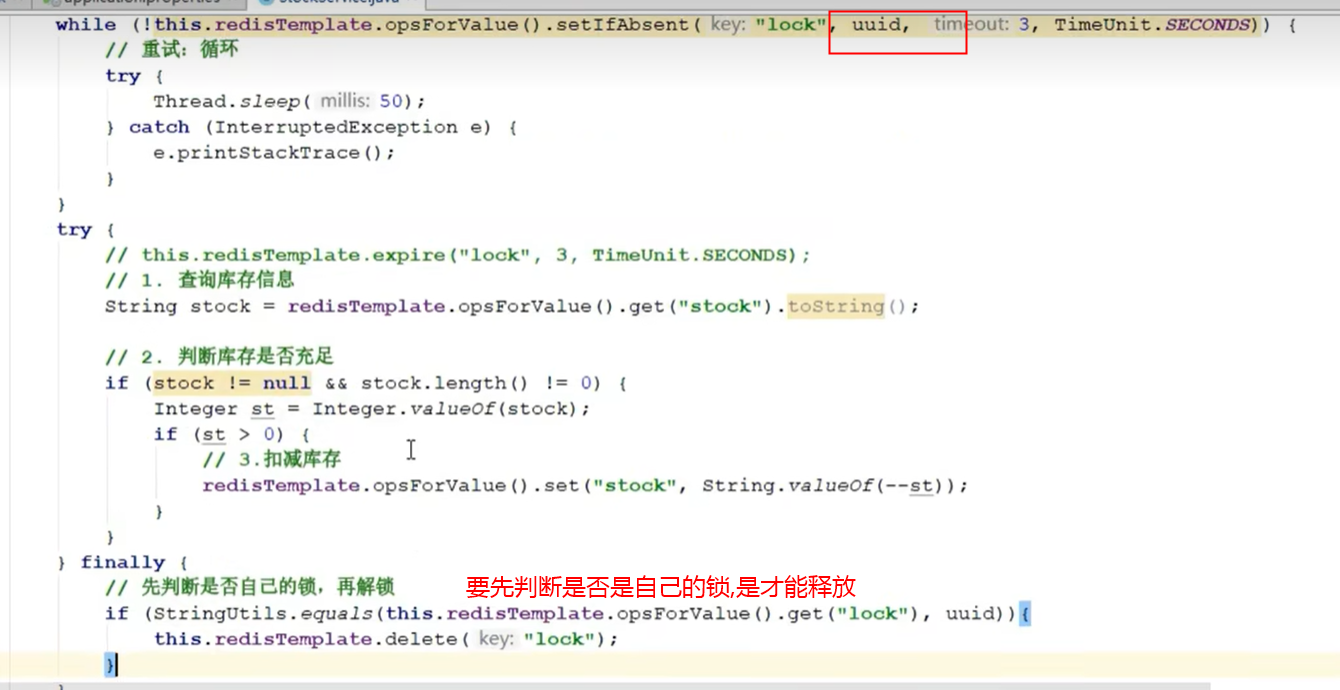 redis 分布式锁 uuid(自己只能释放自己的锁)