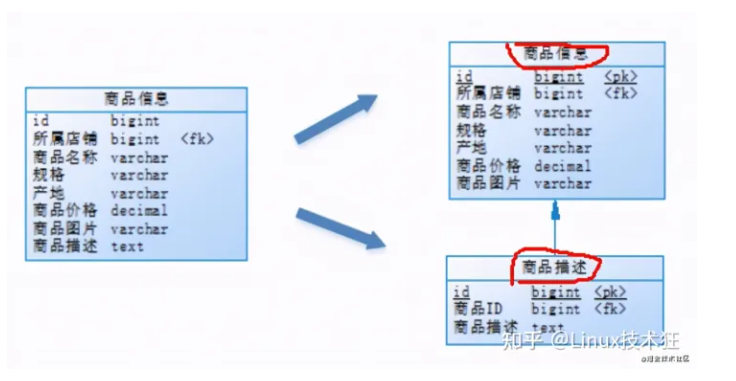 还是以商品信息表为例:用户在浏览商品列表时,只有对商品感兴趣时才会点进去查看商品的详细描述信息。因此,商品信息中商品描述字段访问频率比较低,且该字段存储占用空间较大,访问单个商品IO时间较长;商品信息表中商品名称、商品图片、商品价格等其它字段数据访问频率较高。