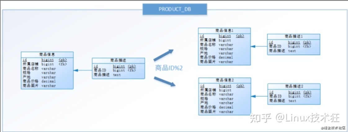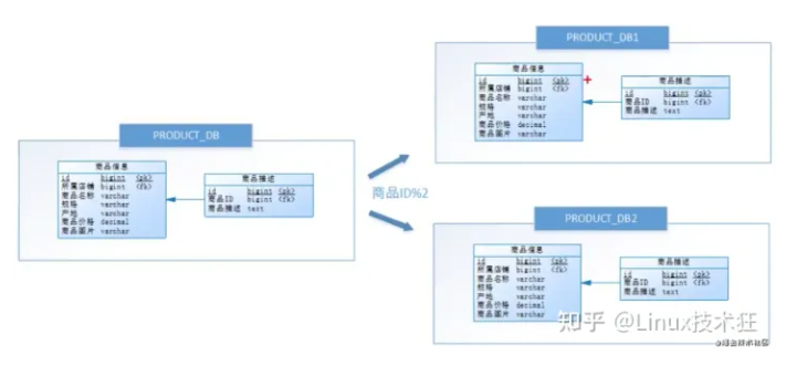 按照水平分库的思路对商品库内的表也进行水平拆分,其目的是为了解决单表数据量大的问题,如下图所示:
