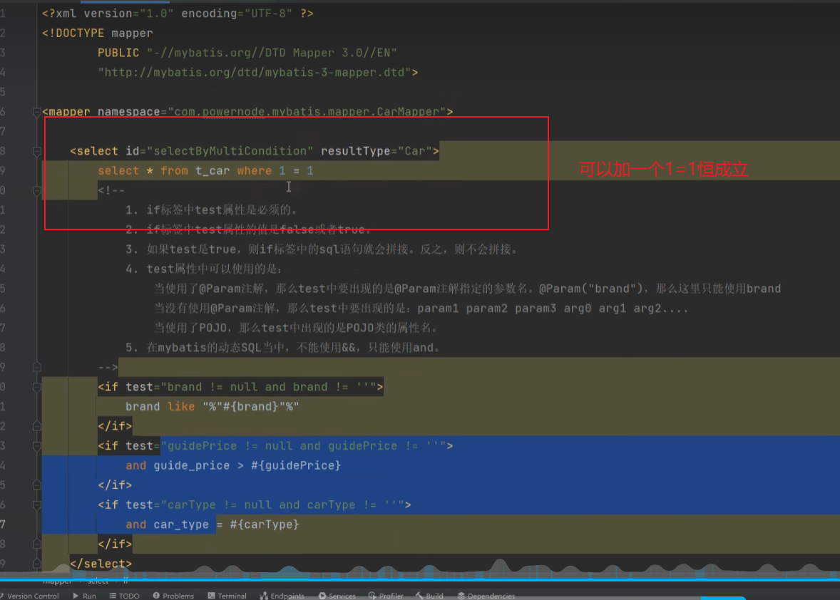 可以不用where标签 然后拼一个1=1