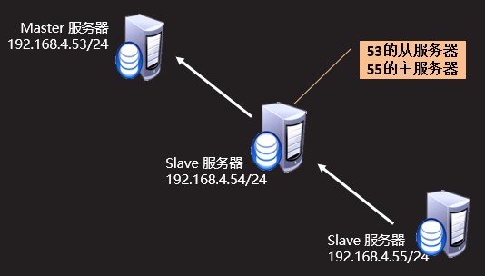 使用3台虚拟机,分别运行mysql数据库服务,且管理员root可以本机登录;主机192.168.4.53为主服务器;主机192.168.4.54为从服务器;主机192.168.4.55为从服务器。