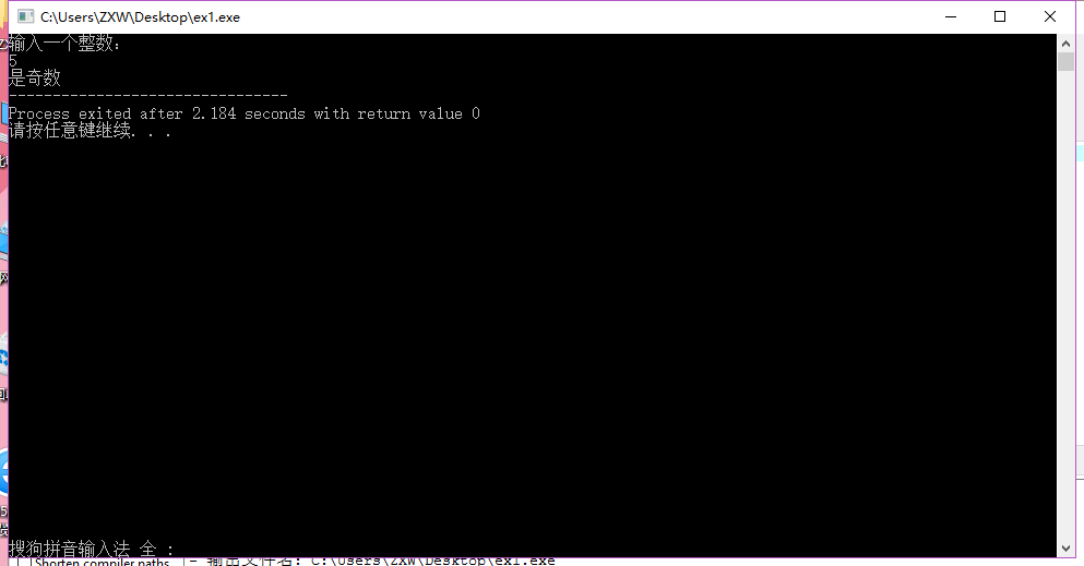 #include<stdio.h> int main() { int x; printf("输入一个整数:\n"); scanf("%d",&x); if(x%2==1) printf("是奇数"); else printf("是偶数"); return 0; }
