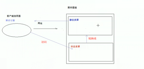 ②如果用请求的是动态资源,那么服务器会执行动态资源,并转换为静态资源,然后发送给浏览器