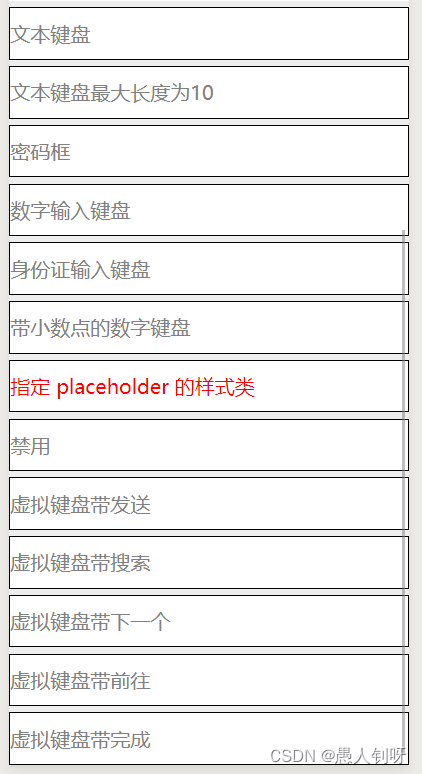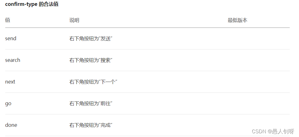 <input confirm-type="done" placeholder="虚拟键盘带完成"/>
