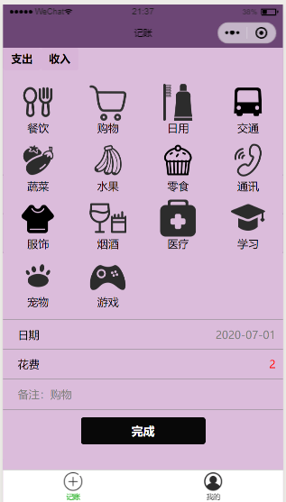1、虽然在记账时实现了消费方式分类,但是在总结时没有实现消费分类;