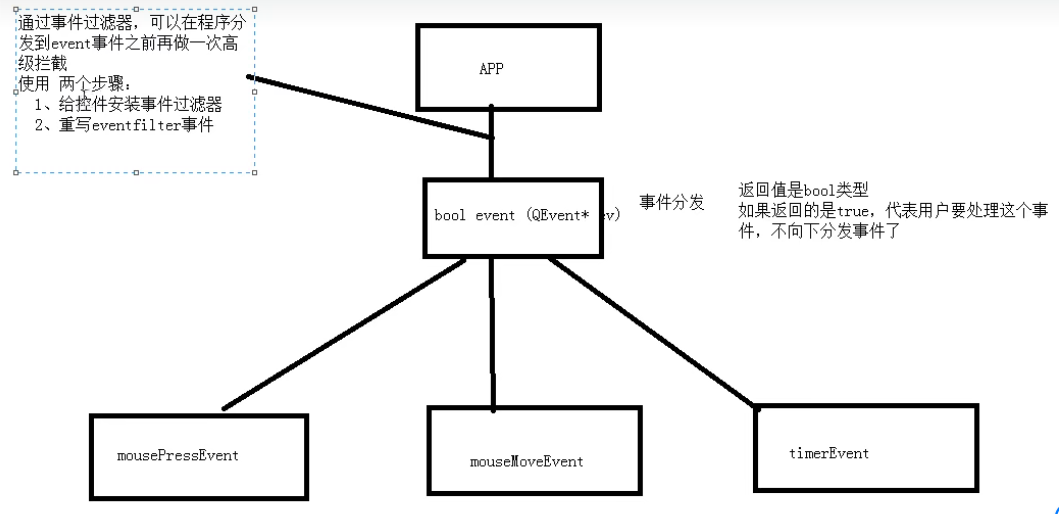 在程序将事件分发到事件分发器前,可以利用过滤器做拦截