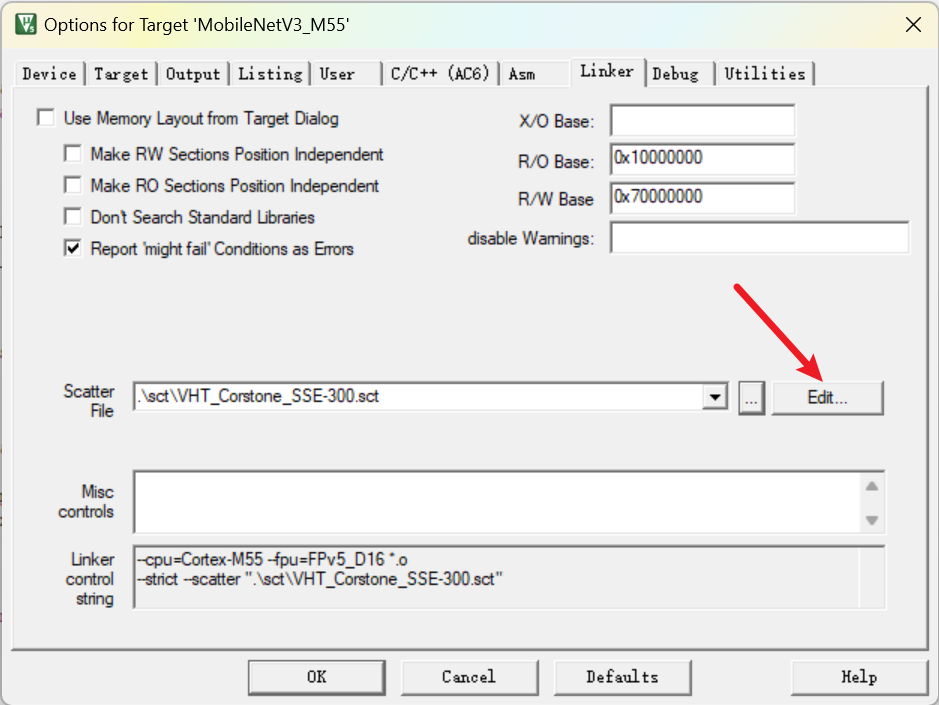 如果你使用的模拟器是 VHT_MPS3_Corstone_SSE-300,修改 sct 文件如下: