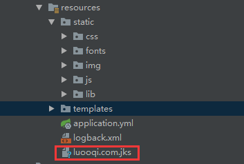 SpringBoot 默认使用 Tomcat 进行网站托管,因此从压缩包中的 Tomcat 目录将证书(文件后缀为jks)拷贝到 SpringBoot 工程的 resources 目录下即可:
