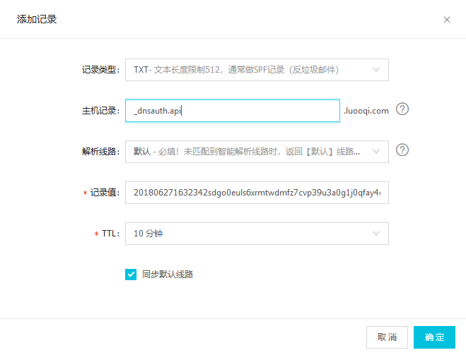 选择DNS验证后,会看到以下信息: