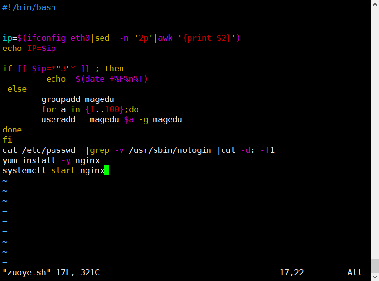 ip=$(ifconfig eth0|sed -n '2p'|awk '{print $2}')