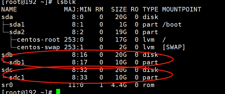 2.sdb、sdc各划分10个G