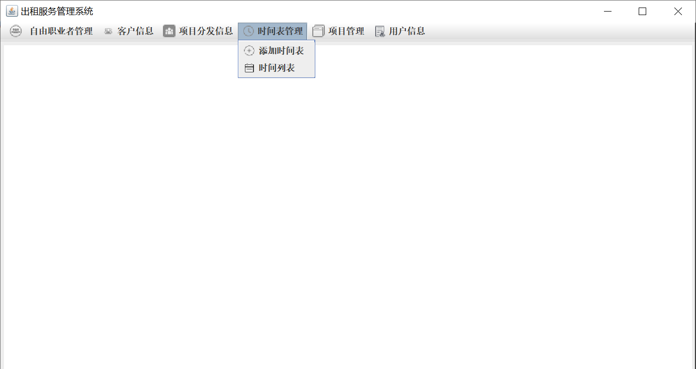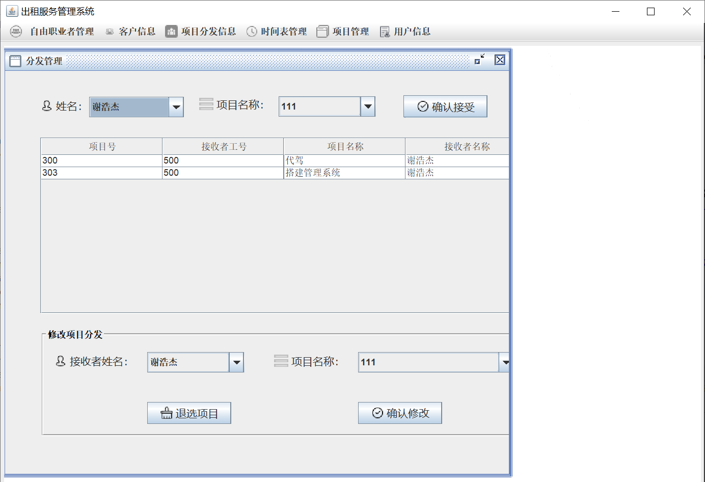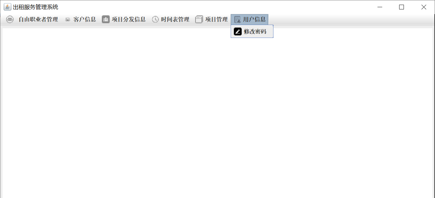 自由职业者:进入系统后自由职业者信息、项目信息、自身信息、项目分发信息、时间表以及修改自身信息、时间表和自身项目分发信息