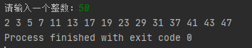 1 # 打印素数 2 3 """ 4 介绍: 5 素数是指在大于1的自然数中,除了1和它本身以外不再有其他因数的自然数。 6 因数是指整数a整除整数b(b≠0),那么b是a的因数。 7 例如:2, 3, 5, 7, 11, 13, ...... 8 9 知识点: 10 1、循环语句:for 11 2、条件语句:if 12 3、跳转语句:break 13 14 不足(待改善): 15 1、可以尝试用”数据类型转化”的方式把素数类型为字符类型,然后用字符串拼接的方式存入变量 16 2、可以尝试引入列表,把所有素数都存在列表中(xxx.append()) 17 3、这个程序是初始版本,可增加一些条件:防止输入输入负数。 18 4、可以完善本程序,可以增加一些文字提示,让可读性更好,例如:10以内的素数有......;输入有误请重新输入整数...等 19 """ 20 21 22 # 输入一个整数 23 num = int(input('请输入一个整数:')) 24 25 # 把2单独拿出来处理 26 if num >= 2: 27 print(2, end=' ') 28 29 # 判断是否为素数 30 for i in range(3, num+1): 31 for j in range(2, i): 32 if i % j == 0: 33 break 34 35 if i-1 == j: 36 print(i, end=' ') # 打印素数