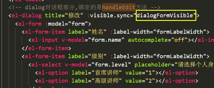 <el-dialog title="修改" :visible.sync="dialogFormVisible">