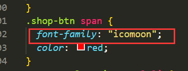 最后给span定义个类选择器,引入icomoon“font-family”字体样式