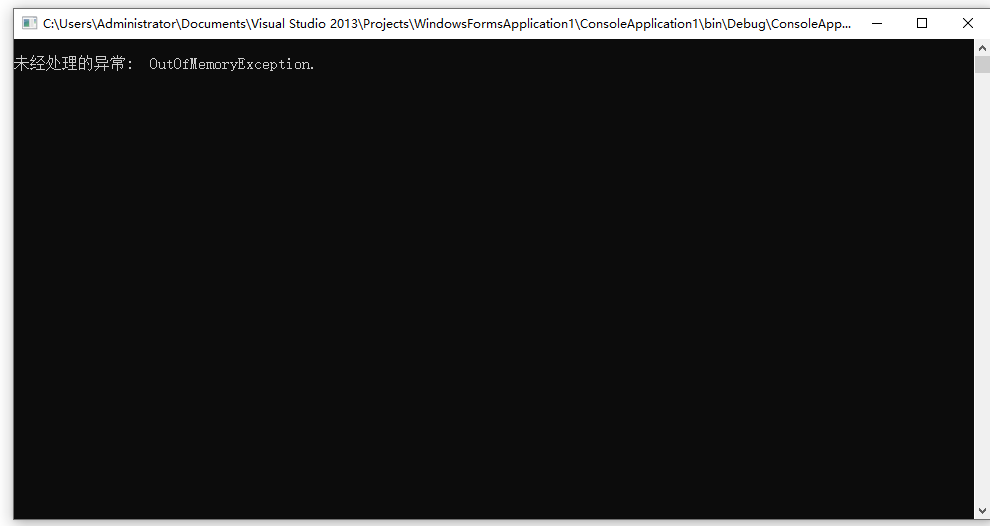 继续增加缓存数量级从100改到1000000时就会出现“System.OutOfMemoryException"内存爆掉了