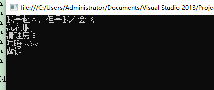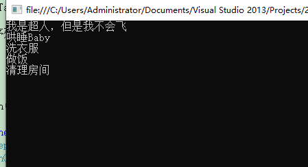 public class SuperMan : Person { public override void GetTasks() { Console.WriteLine("我是超人,但是我不会飞,我会打LOL"); } }