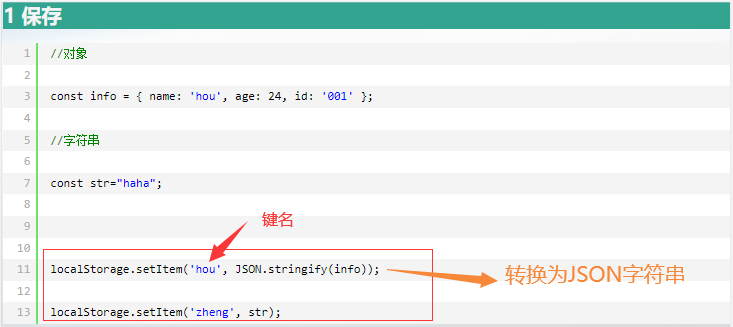 注意:sessionStorage 和 localStorage 的用法基本一致,