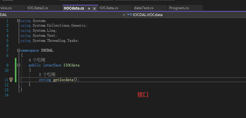 1、和“简单工厂”模式一样,首先定义个接口 --实现bll与dal解耦,实现依赖倒置
