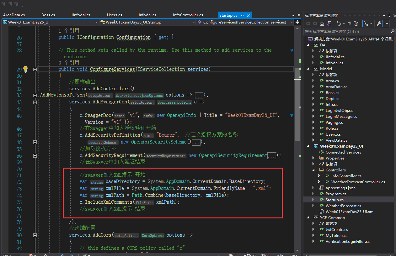 2-3、在Startup文件夹ConfigureServices方法中添加代码