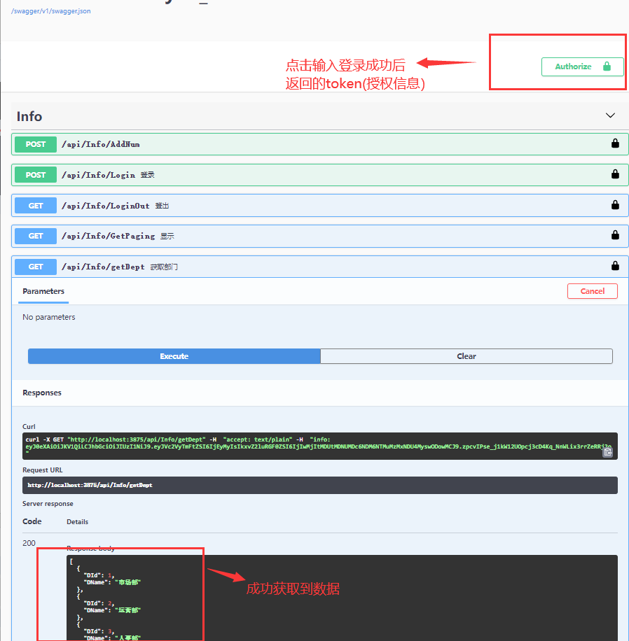 *只要授权成功,则Swagger测试执行不同功能时不需要再输入token信息…