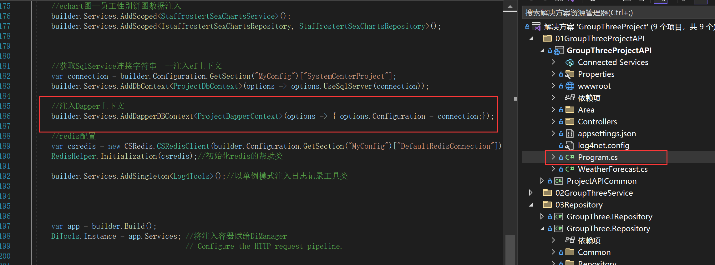 Program中注入Dapper上下文