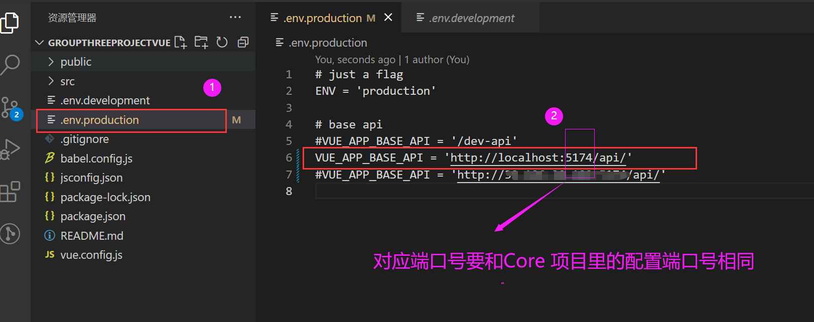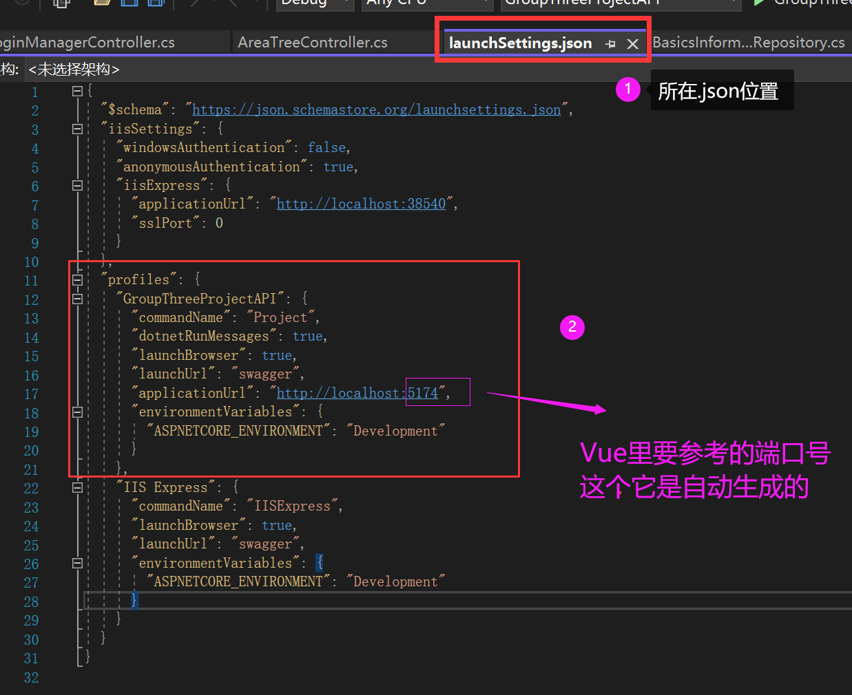 --参考下图一在.net Core的对应文件中查看Vue配置文件要配置的端口号名称