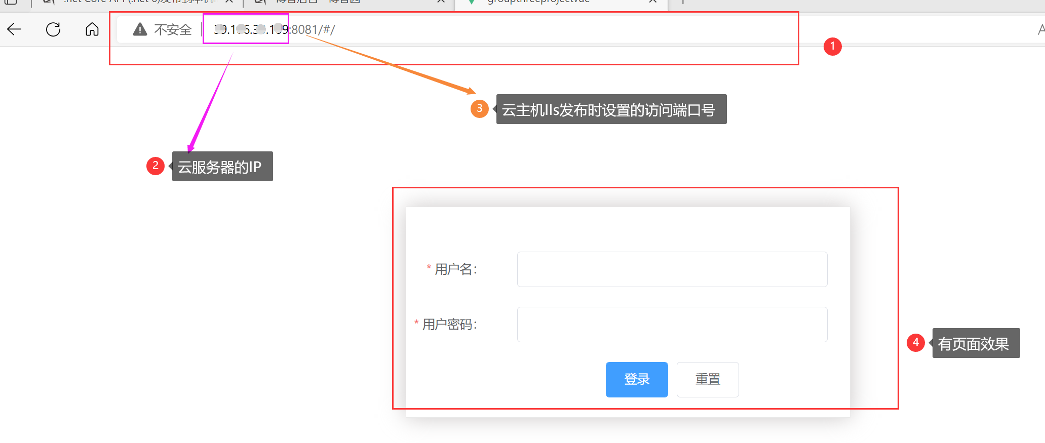 3、将打包好的文件复制到云服务器 =》进行发布到IIS(与本机发布操作一样)