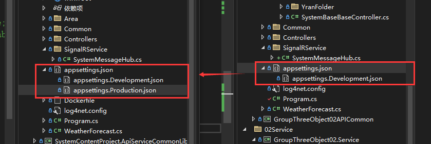 6、原先的放置路径文件 appsettings.json 下默认只有 appsettings.Development.json 一个
