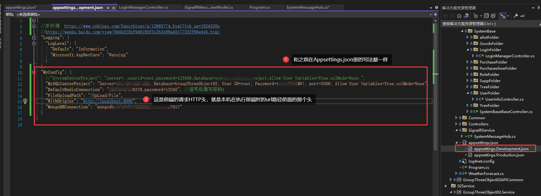 6-2 原先在appsettings.json下写的路径--现在统一先转移到appsettings.Development.json(表示开发环境下-类似于vue当时添加配置文件理解的那样--分为两个)