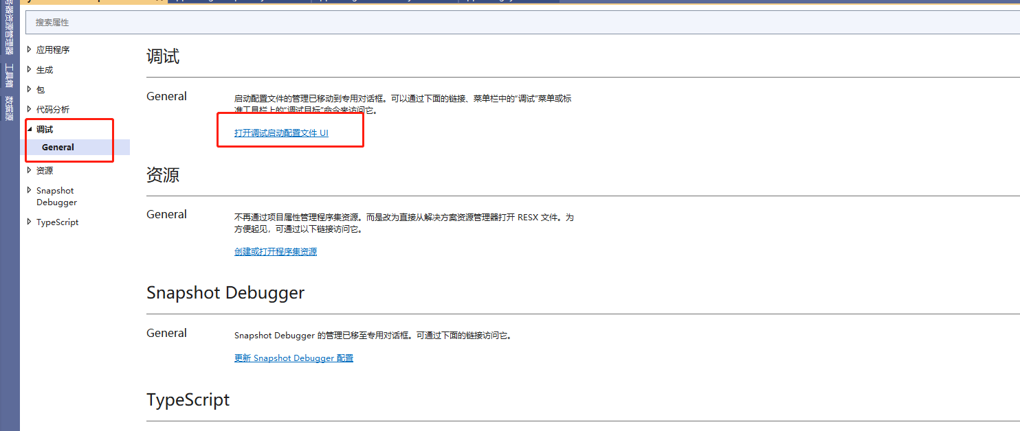 2-2选择调试->General->打开调试启动配置文件UI