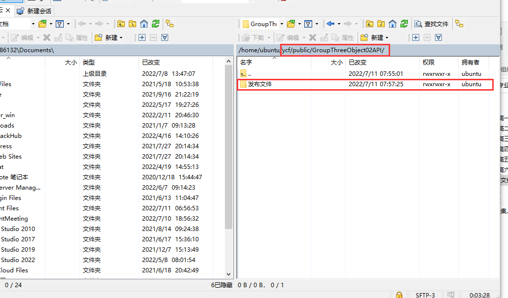 3-3-2、上传发布的项目文件--直接复制粘贴过去这个发布文件就好