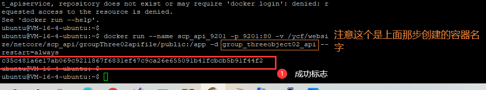 docker run --name scp_api_9201 -p 9201:80 -v /home/ubuntu/ycf/websize/netcore/scp_api/groupThree02apifile/public:/app -d groupthree02project_apiservice --restart=always