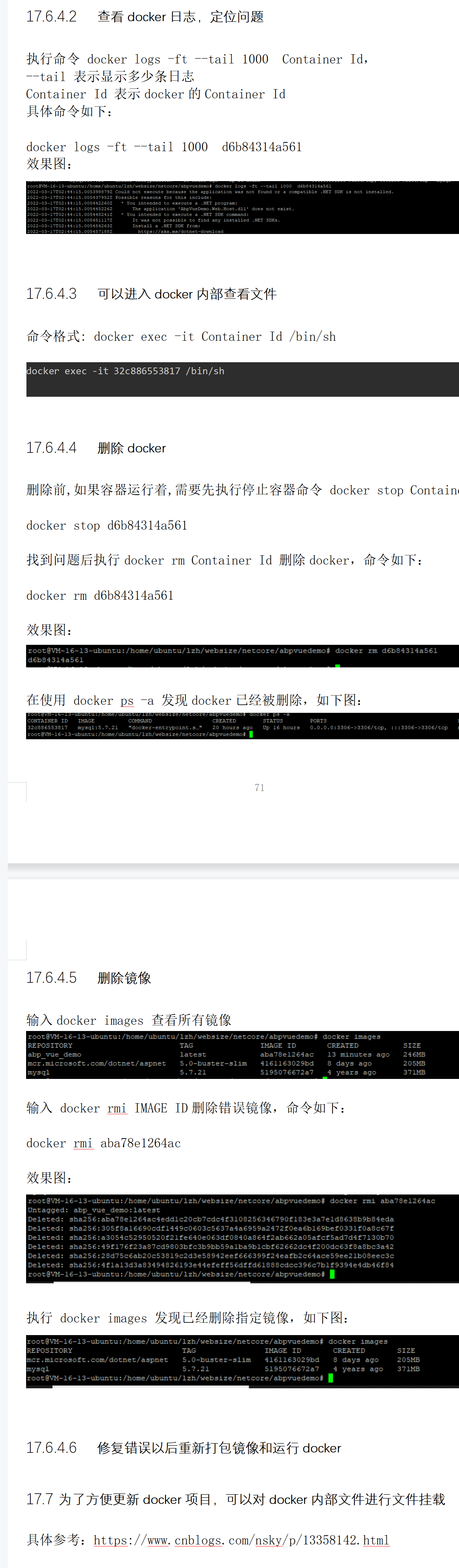 --把容器镜像都删除了,然后重新倒3-7-4那步看看,当前发布遇到的问题就是那个路径错了,因为我的根目录有个ycf的文件,所以它3-7-2的时候赋值到那里了,而且下面3-7-4启动容器的路径也用成那个路径了,所以有上面的这个错