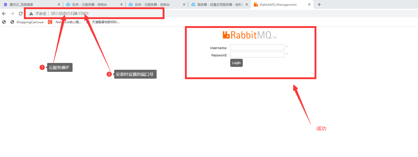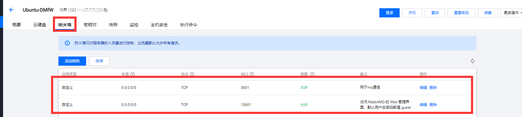 3、云服务器(腾讯云)配置防火墙 --设置端口号 (暂时需要配置两个)--必须配置好这个后才可以有上面那种登录页面的显示效果
