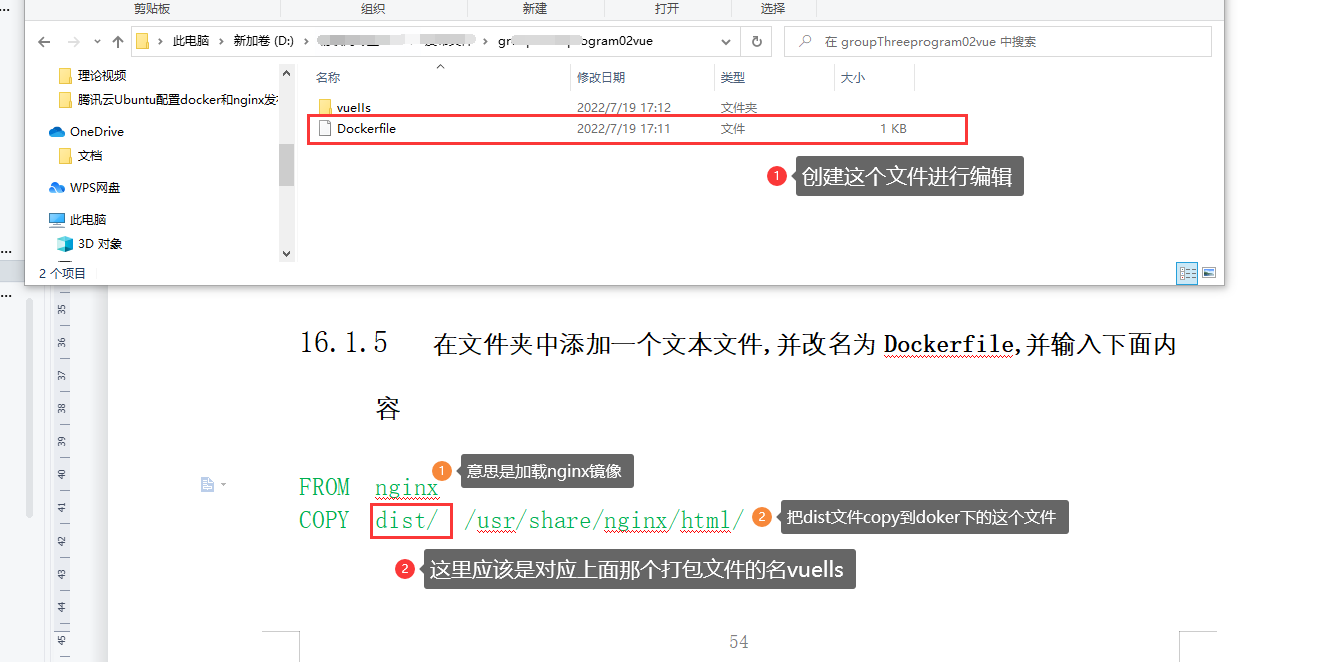 3、本机创建一个文件夹用于存放vue打包文件和Dockerfile、把刚刚打包文件复制到这个创建的目录