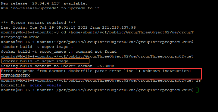 2、putty进入打包文件文件夹---并构建vue项目镜像